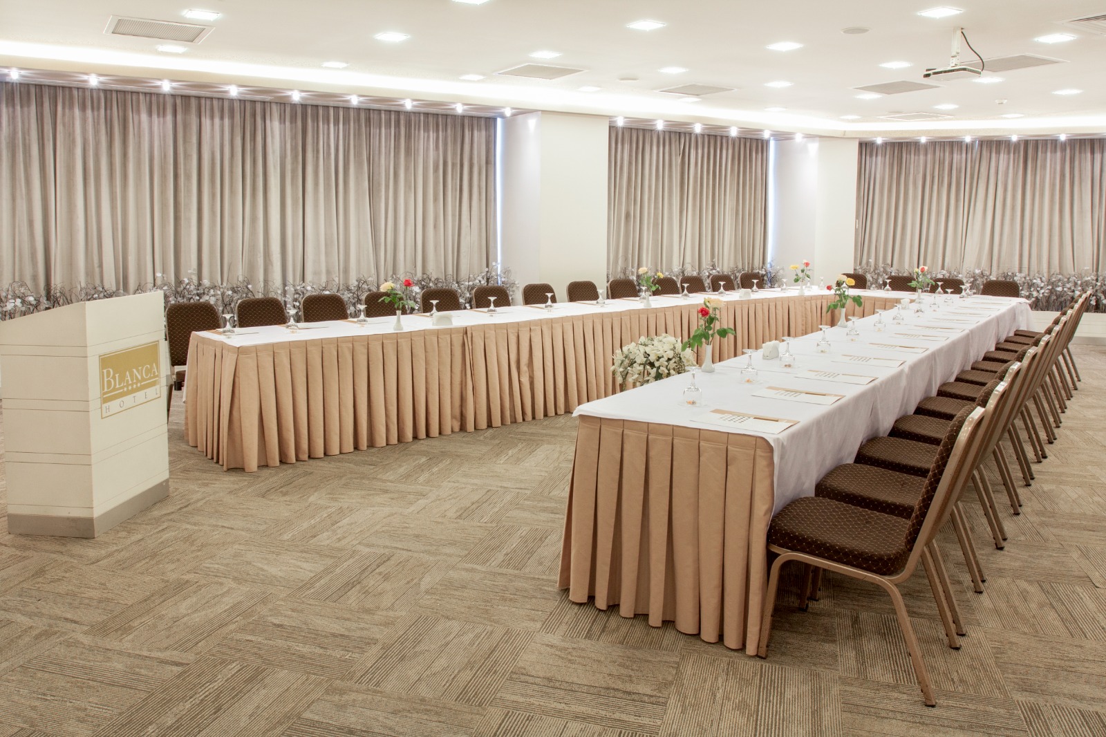 Blanca Otel, yüksek teknolojili altyapısı ile donatılmış şık ve fonksiyonel toplantı salonları ile iş dünyasının ihtiyaçlarını karşılamaktadır.